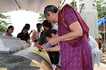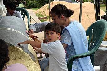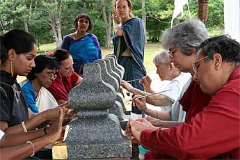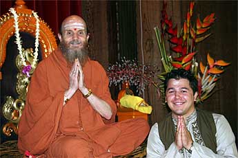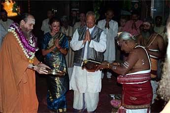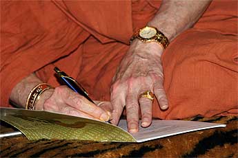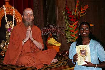 The day after Guru was a day "off," with no special events. But we were all busy nevertheless. Bodhinatha had darshan meetings with many of the devotees during the morning... Here is Jutikadevi Sivaraja, receiving her Samaya Diksha (Mantra Initiation) sadhana guidebook...