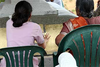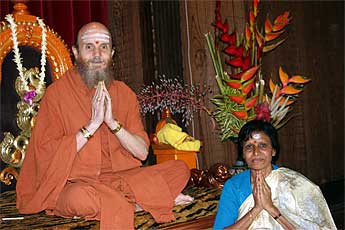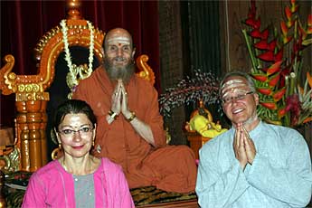 Dr. Selva and his wife, from Lancaster, California, are here on pilgrimage. They flew over a few days ago to attend the Garbhanyasa ceremony for Iraivan Temple and have been spending their time on the island here at the aadheenam.