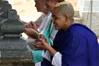 Nalakini Niranjana from Malaysia shaved her head and received blessings...