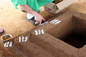 A natural clay homa pit was prepared for the Garbanyasa ceremony to come the next day...