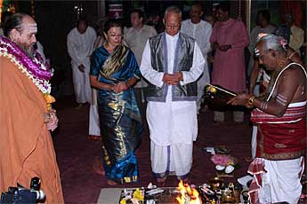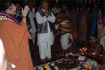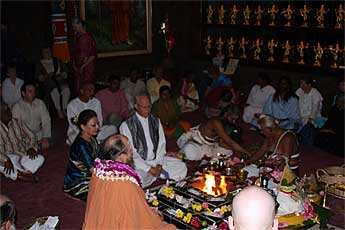 The priest come up for blessings after the homa.