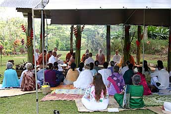 Bodhinatha continued to meet with pilgrims today. Here are Kulapati and Kulamata Vel and Valli Alahan, from Colorado.