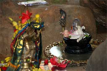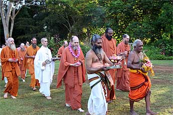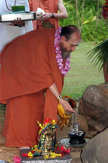 The small crystal lingam that sits in front of Gurudeva in Kadavul has been brought out to be part of the ceremonies tonight.