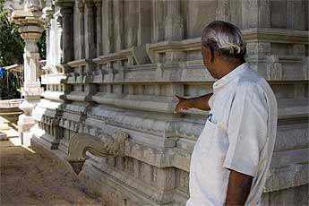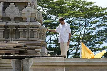 Kulapati Deva Rajan on top of the temple examining the stone work first hand.