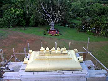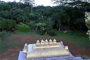 The photo on the right shows Gurudeva blessing the spot where Ganesha is right now. Here's the story of that sacred event. About 20 years ago the community purchased a 5-acre plot of land. The parcel was undevelo