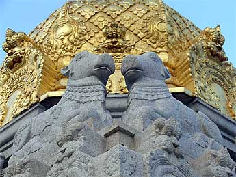 The temple has 10 full time priests - some Vaishnava and some Saiva. The main Venkateswara deity in the sanctum is about 10 feet tall from base to top.