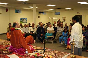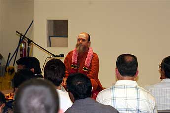 After the puja Bodhinatha headed downstairs to the cultural hall to give a talk titled "Work is Worship".