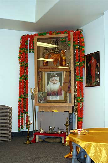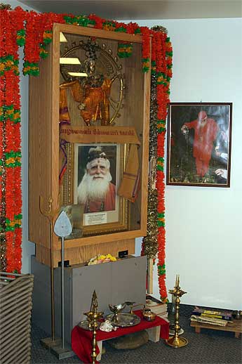On the northeast corner of the hall is a shrine dedicated to Gurudeva who presented the community with a Ganesha many years ago to begin the worship and guided the community in the establishing of the temple.