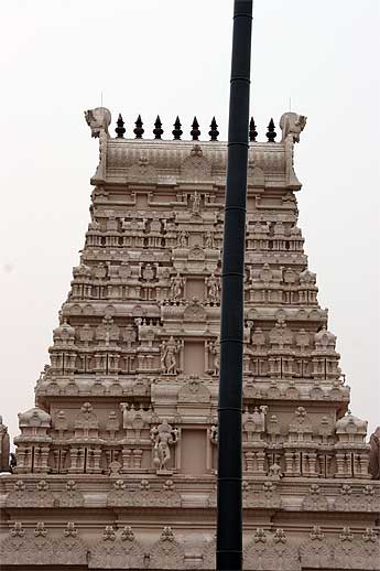 The gopuram is tall and spectacular making you feel like you are walking into a temple in south India.