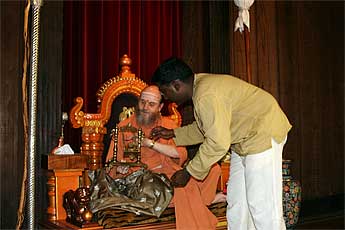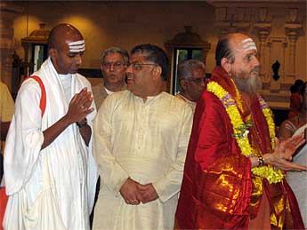 Temple trustees welcome Bodhinatha.