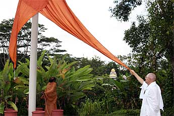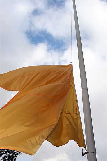 After our meditation this morning we were off to change the flag...