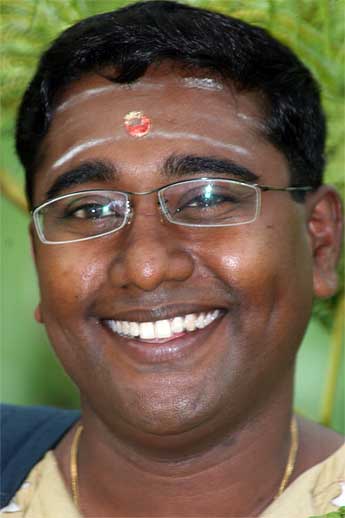 Here Senthil give Bodhinatha a gift... Having grown up the past decade side-by-side with his father Jiva Rajasankara, mother, Kanmani and brother, Thuraisingam, at the Iraivan temple carving site, Senthil really understands and knows about granite. Under his guidance Artha Enterprise has won first prize in two annual international STONA shows in India and is now actively sought after by leading builders, no only in India but in UK and elsewhere.