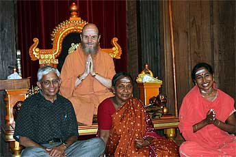 The Umakanthan family from California visited and met with Bodhinatha today. They have visited prior and one time the daughter, Janani, actually danced for Gurudeva. Today they asked thoughtful questions to Bodhinatha about the reasons for needing a satguru in one's life, and whether it is okay to change from guru lineage to another. Bodhinatha explained that it is okay, if following certain protocols. Formal release must be obtained from one guru lineage before seeking out another.