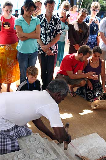 Later Arumugaswami addressed the group on the subject of Bodhinatha's 6-point description of their temples, and handed out the illustrated pamphlets we brought for them. They all grabbed them up within two minutes.