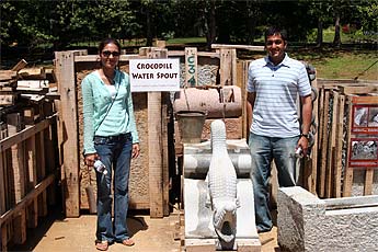 Piyush and Ipashri Bharti were our guests this morning. They had heard about us from relatives and friends so they decided to visit us all the way from London. It's their first visit to the monastery and they were quite fascinated with many things here especially this very unique crocodile water spout.