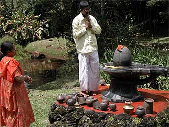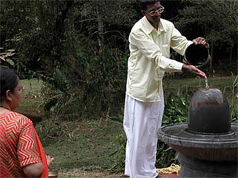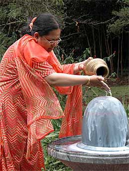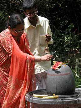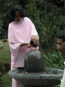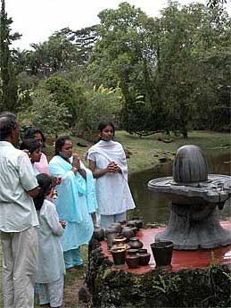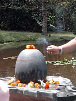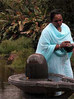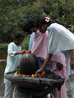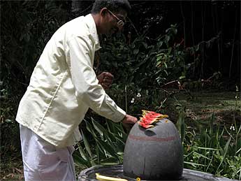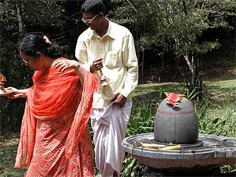 Ramalingam and Hema at the Narmada Lingam on the path of the Saiva Saints.