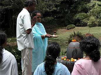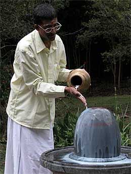 Ramalingam and his wife Hema are here from Vancouver. They knew Gurudeva and met him several times in Concord. He and his wife discussed with Bodhinatha and sought his advice on the Ganesha temple in Vancouver. Ramalingam occasionally helps with pujas there.