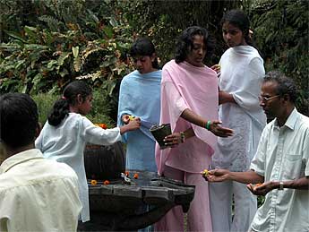 Mr. Prasad with his wife, daughter son and their grandmother. The elder lady asked Bodhinatha many insightful questions.
