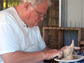 Brahmachari Rajadeva Alahan concentrated on his murthi making...