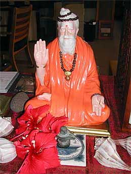 A small murthi of Gurudeva in the publications building... He greets everyone who enters.