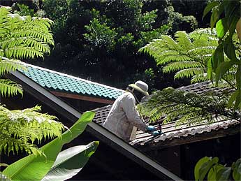"Look! Another colony is here under the tiles!" All morning was spent again for three of us, removing this second colony of bees....