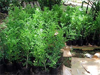 The rest of today's TAKA photos are nature visuals for you all to enjoy... Photos of Siva's citadel in Hawaii taken this morning. The Mock Orange trees below, 200 of them, were brought from another island to be planted to form a living fence for the Rudraksha Forest.