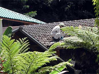 After removing the honey bees from inside the wall of the Guru Peedam, we still saw them coming and going... So our team went into action again, this time on the roof.