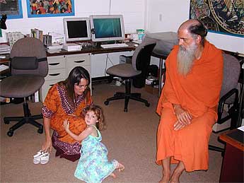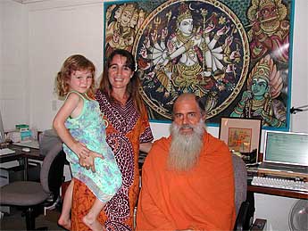 A family from San Diego visited today. They came into the press and the 6-year-old Zion met an important person in her life, the creator of Mystic Mouse. She and her mother love this color-book and introduction to Saivism for kids. To meet the monk who created one of the characters of her young life was a precious, if intimidating, moment. Natarajnathaswami took the entire family online to show more of Mystic Mouse's stories, many that have not been printed yet. But they were happy to learn these are all available, for free, online.