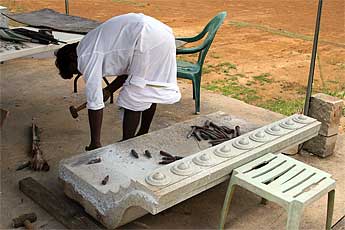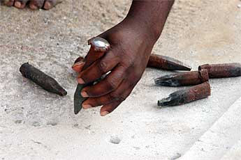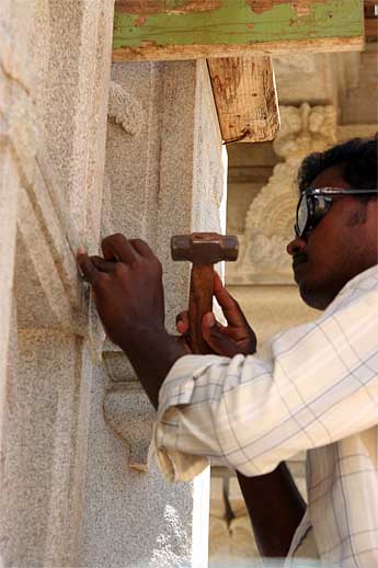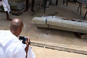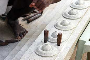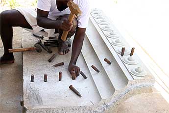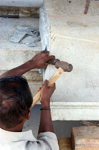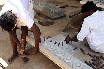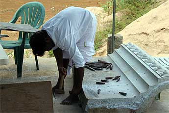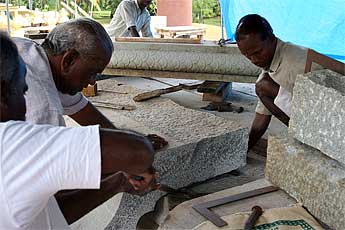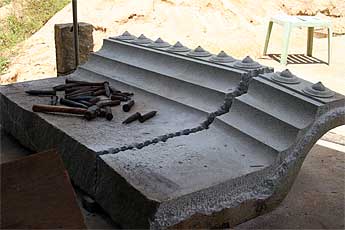 We close today with photos that tell their own story-- the story of "Shortening the Sun Shade Stone...."