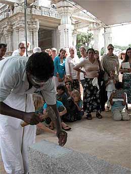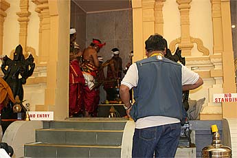The final big day has arrived! The Maha Kumbhabhishekam, when the kumbha water is poured over the vimanam of each shrine. Sri Sankaran Sivacharya explaining to us what is happening