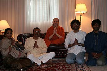 On the second day in Perth we had some darshan meetings with Bodhinatha. Here is the Satgunasingham family, who we have an extra special connection with because one of their three sons is Sadhaka Dandapani. His two brothers, Dharmaguhan and Arunachala, are on the right. Special thanks, by the way, to Arun, who thoughtfully shot TAKA photos of the temple events for us using our camera.