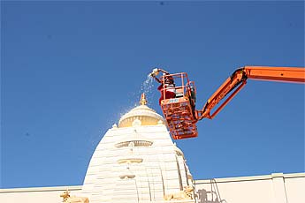 Here is a beautiful photo of kumbha water being poured over the vimanam tower for another Sivalingam in a side shrine. This is a Sivalingam at which devotees will be able to offer their own worship-abhishekam. In fact it is the original Sivalingam of the temple which Gurudeva gifted many years ago