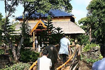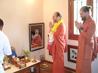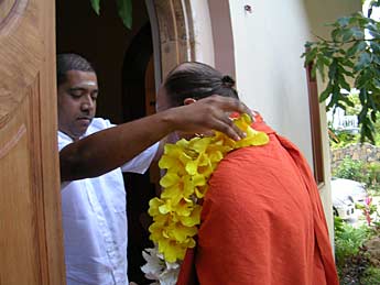 On Friday, all members of the Mardemootoo and Manick Kutumbas (extended families) residing in the north met at Kulapati Sivakumaren's newly built house at Cap Malheureux. Bodhinatha is being welcomed at the entrance by Kulapati Sivakumaren.