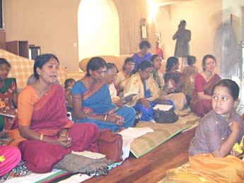 We could not get good photos of devotees due incense burning in the room. Here is a rather good one of sishyas singing.