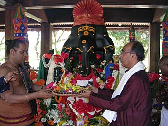 A final offering to Lord Ganesha by the Sivacharya and Kulapati Mardemootoo.