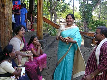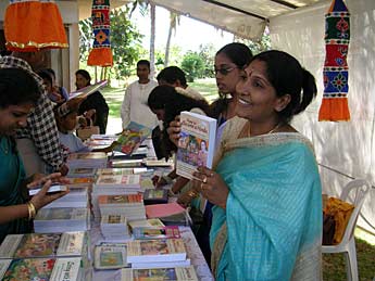 Another selling point was set up near the Mini Mela. Here is Kulamata Premila Manick explaining about Gurudeva's "Loving Ganesha" book.