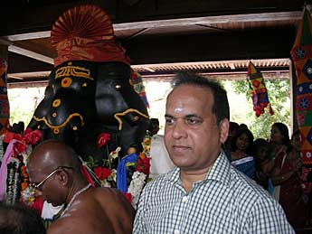 Back to the Mandapam...Government Minister of Foreign Affairs, Hons. Madan Dulloo who took an hour off his office, came to receive the Blessings of Lord Ganapati. He is leaving for an important Mission at the United Nations.