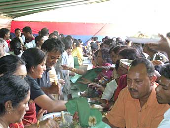 Large tents were set up to serve as food stations. The Mardemootoo kutumba coordinated that activity.