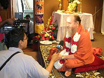 The national TV was there to cover this event for the evening News. Bodhinatha is giving a short interview to the reporter of the Mauritius Broadcasting Corporation (MBC).