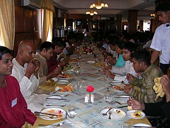 Lunch is served at the Hotel restaurant. An atmosphere of joy and brotherhood pervades the place....
