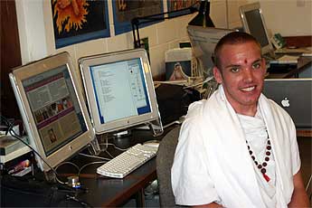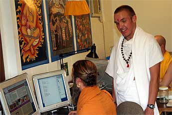 Tyler Comer is here from Jefferson City, Tennessee on a three month task force program... This phase he is spending the morning with the publications team. Today he's helping Acharya Kumarswami with some research on the next insight section.