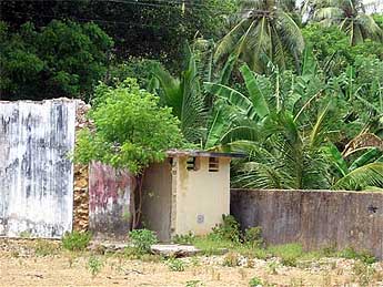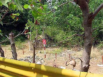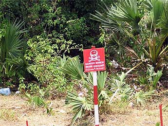 A sad reminder of the state of affairs is just behind the Kottam: a danger sign... the ground is filled with land mines.