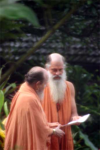 Here he is presenting some recent work to Bodhinatha for review. These meditation maps are used by the monks and initiated sishya in their daily meditations.