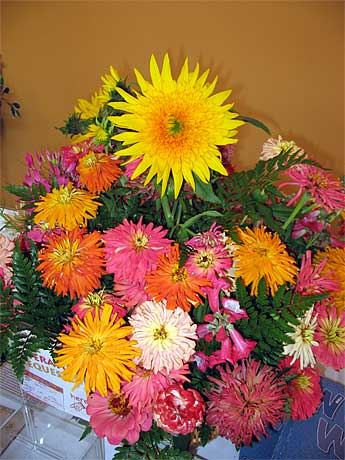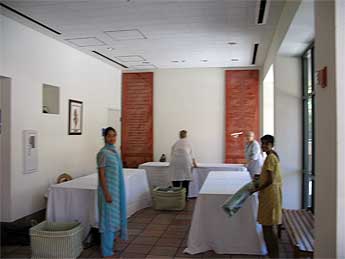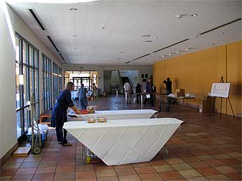 Here the members are working to set up the hall in front of the auditorium ... and what a fabulous job they did....