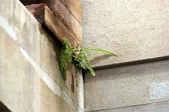 The thick pranic field of tropical climates makes for easy living just about anywhere... a small fern spore blew into a crevice and happily started growing...