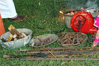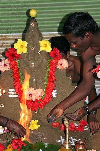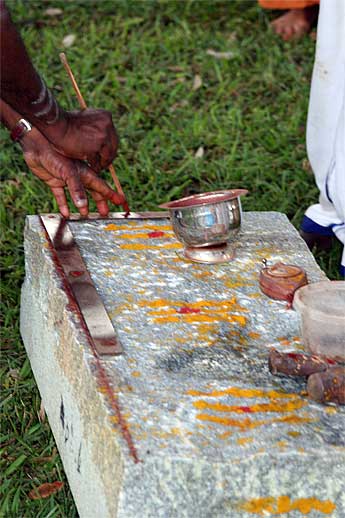 We step back to yesterday... which was Ayudhya puja day.. our silpis at the patra (black smith forge) .. boiling the rice prasadam...