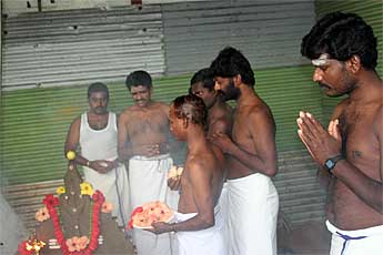 Our Siddhidata Kulam also observed Ayudhya puja by decorating and blessing their "maintenance bay" where they work on vehicles, do welding etc.