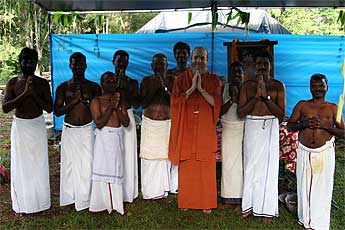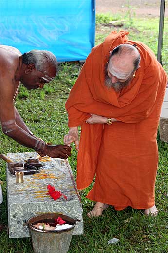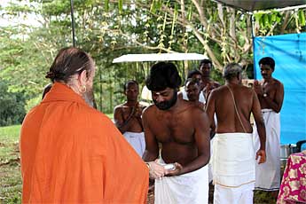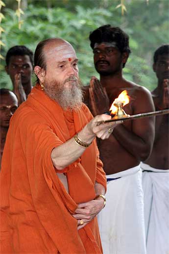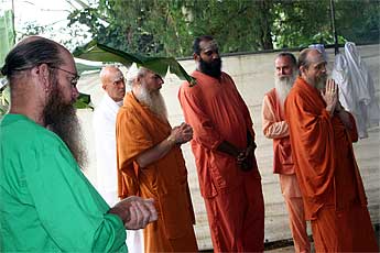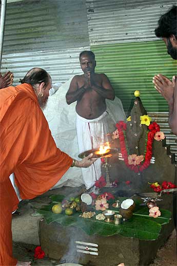 Sthapati worships the sadhus with arati...