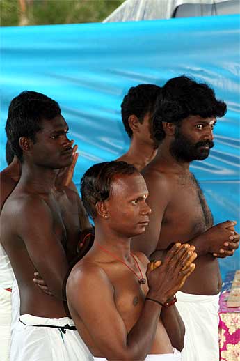 Bodhinatha gives dakshina to the silpis, a cash donation and a new veshti...