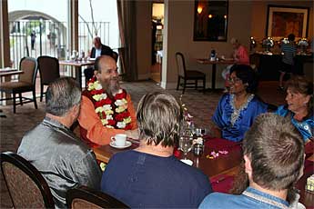 After the breakfast event Bodhinatha met with a couple of devotees and is now getting ready to go to the donor reception event. He will fly this evening to San Francisco.